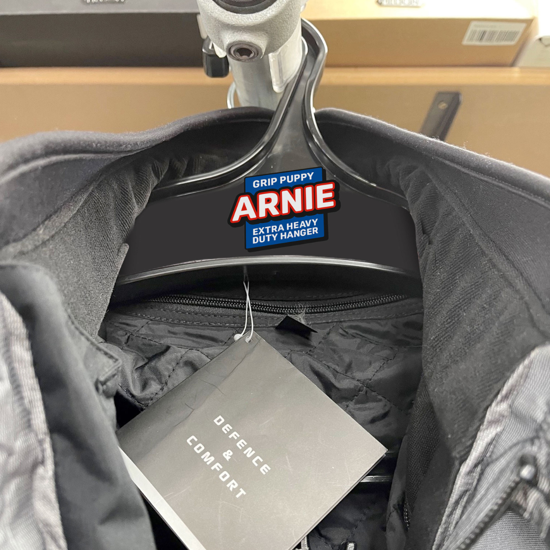 Grip Puppy Arnie - World’s Strongest Coat Hanger is an oversized hanger for broad shouldered gear and features co-polymer construction for ultimate strength and durability. Each hanger has a 140+ pound (63.5kg) load capacity, thanks to the I-beam design. Each hanger is 100% made in The UK.
